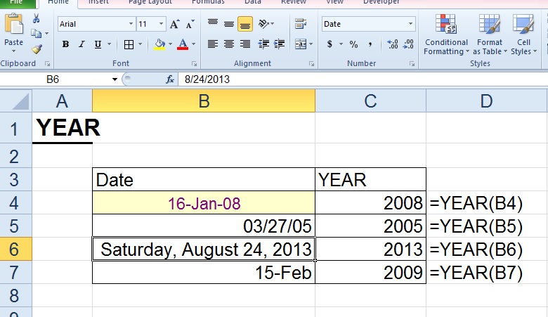 Year function का प्रयोग कर excel में हम date से साल निकालते है.