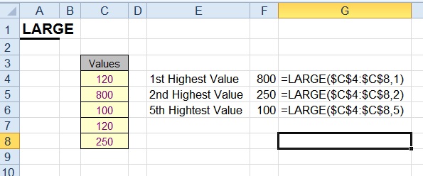 Large Function की मदद से हम कि किसी range से 1st , 2nd, 3rd या इस तरह largest की वैल्यू पाते हैं.