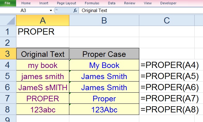 यह फंक्शन cell के वैल्यू के प्रत्येक शब्द के first letter को upper case में convert करता है. बाकी letter को lower case में convert करता है.