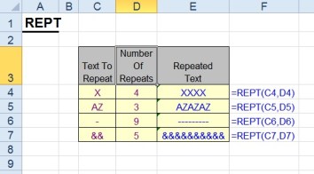 In excel we use REPT fucntion to repeat a text for number of times. In other words, REPT function repeats a text in a cell the number of times what we specified.