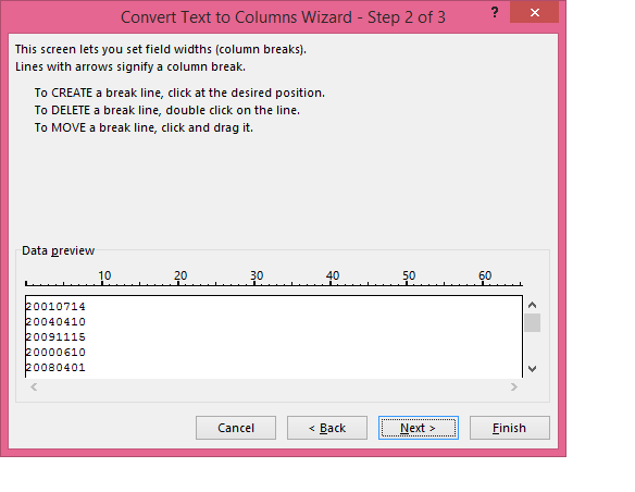 10 से 20 के बीच विज़ार्ड पर क्लिक करें, और एक पंक्ति दिखाई देगी, इसे 4 digit के बाद खींचें, फिर से ऐसा करें और इसे 2 digit के बाद खींचें।